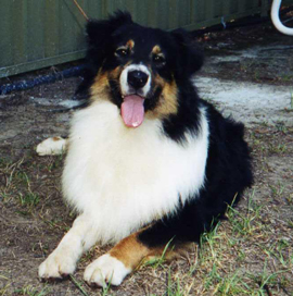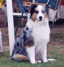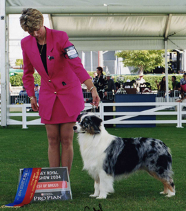 'Cheetah' who is also a daughter of Levi Dockers of Heatherhill and Ebbtide Foreign Affair has produced 'Dare' displayed below. 'Dare' was the 1st Australian Shepherd to win a group 2 at the Sydney Royal Easter Show. |